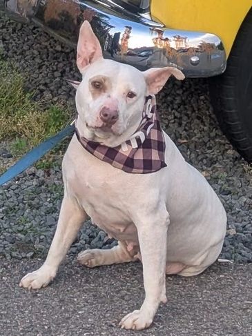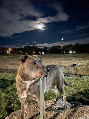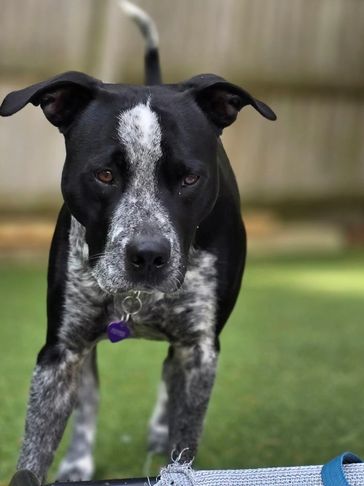 This is Izzy. We assume she is the mother of Dillon who was adopted back in 2021, they were dumped together. Izzy had heartworm but has been treated. She now has a clean bill of health. Izzy loves the water and loves to run. She LOVES cookies!!