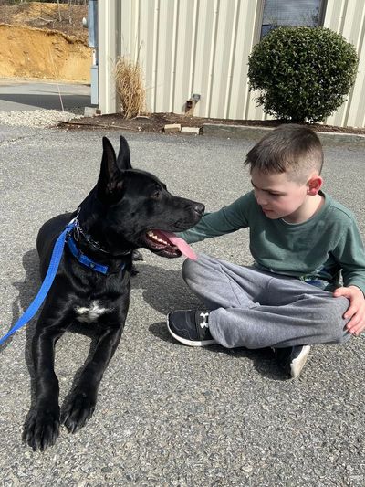 He loves people, dogs, and snacks, in that order. He’s working on his leash manners, but to be fair, he thinks every dog he sees is his long-lost best friend and he’s just trying to say hi with his whole body.